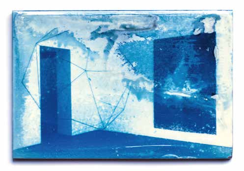 Blue Memories (Åplus), cyjanotypia na ceramice, werniks, 10x14,8 cm, 2024 Blue Memories (Åplus), Cyanotypie auf Keramik, Firnis, 10x14,8 cm, 2024 Blue Memories (Åplus), cyanotype on ceramic, varnish, 10x14,8 cm, 2024