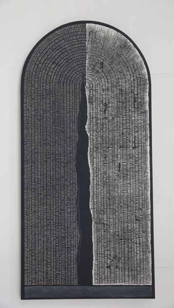 Dorota Herbik, Equilibrium V, technika mieszana na sklejce, olej, srebrzenie na pulmencie, relief, 2023 Dorota Herbik, Equilibrium V, Mischtechnik auf Pressspanplatte, Öl, Silber auf Pulmen, Relief, 2023 Dorota Herbik, Equilibrium V, mixed techniue on plywood, oil, silver leaf on pulment, relief, 2023
