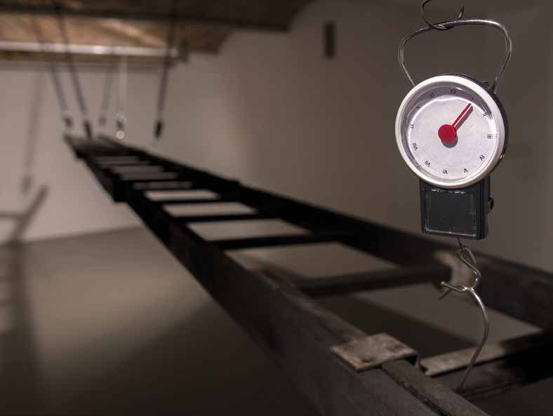 In der Arbeit Unterminierung werden grundlegende Fragen zu Vergänglichkeit, Erinnerung und Opferbereitschaft neu und überraschend interpretiert. Der Künstler bietet eine Reflexion über den Begriff des Gleichgewichts an, aber anstatt ihn nur als physischen Zustand zu bezeichnen, gibt er ihm eine existenzielle Dimension und deutet an, dass das Gleichgewicht, das wir jeden Tag aufrechtzuerhalten versuchen, mehr mit unserer Beziehung zu Zeit und Vergangenheit zu tun hat als mit Raum und Materie. Die Arbeit regt zum Nachdenken über die Gewichtung an, die wir einzelnen Momenten und Erinnerungen beimessen – geht es bei dem Gleichgewicht, das wir in unserem Leben aufrechtzuerhalten versuchen, um unsere Pflichten und Verpflichtungen oder eher um die Erinnerungen und Träume, die wir wie eine unsichtbare Last mit uns herumtragen? Unterminierung scheint zur letzteren Interpretation zu tendieren und legt nahe, dass die wirkliche Last nicht auf physische Belastungen zurückzuführen ist, sondern auf die vergehende Zeit, die Leere, den Nachhall vergangener Bedeutungen und die Ungewissheit über die Zukunft hinterlässt. Die Installation stellt somit eine Reflexion über die Zerbrechlichkeit unserer Existenz dar – ein schwer fassbares Gleichgewicht, das man nicht begreifen oder vollständig verstehen kann, sondern nur betrachten… vielleicht mit einem leichten Gefühl von Ironie und Distanz.