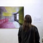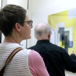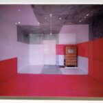 Since 2000, a large number of spatial drawings have been created in various countries, in private and public spaces, galleries, art associations and museums. A spatial drawing is an architectural space that has been transformed into a work of art by means of painting and the raster system. The architectural categories, which ascribe a different function to the floor than to the wall or ceiling, are in this case broken down and the mentioned planes are treated equally. Spatial drawings do not pretend to do anything, they do not create an illusion; they are, in the sense of concrete art, “merely” what the viewers have before their eyes. Although the space of the spatial drawing is empty, it does not appear empty, and everything that is not painted in it and therefore not subject to the raster system (such as doors, switches and contacts, lamps or tiled cookers), suddenly acquires a unique meaning. In two places I stretched canvas over and glued it to the floor. The canvas, which in museums and galleries usually hangs on the wall, in this case became the floor. The visitors therefore had to step into the painting. This caused a significant change in the perception of the room. The architecture seems to have visually disappeared behind this spatial drawing.
